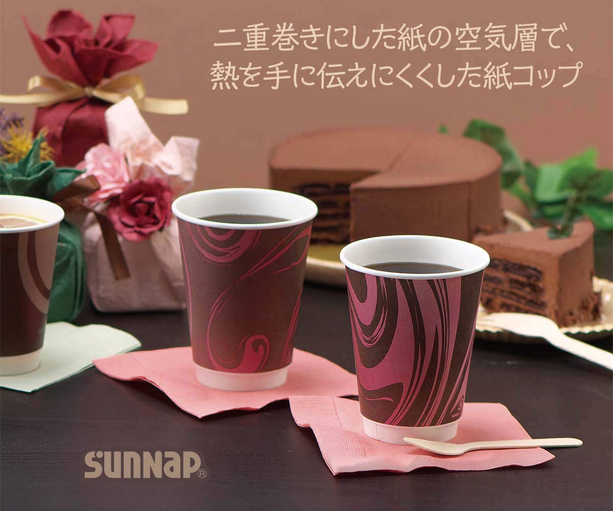 | ここがポイント | 【二重構造の断熱性】 二重巻きの空気層が外面に熱を伝えにくくし、手に持って熱くなりにくい高機能カップです。 【蓋付きでお持ち帰り】 お持ち帰り用カップにもぴったり。ふた付で100組ご用意しております。 【MADE IN JAPAN】 衛生管理万全な日本国内工場で生産されています。 |