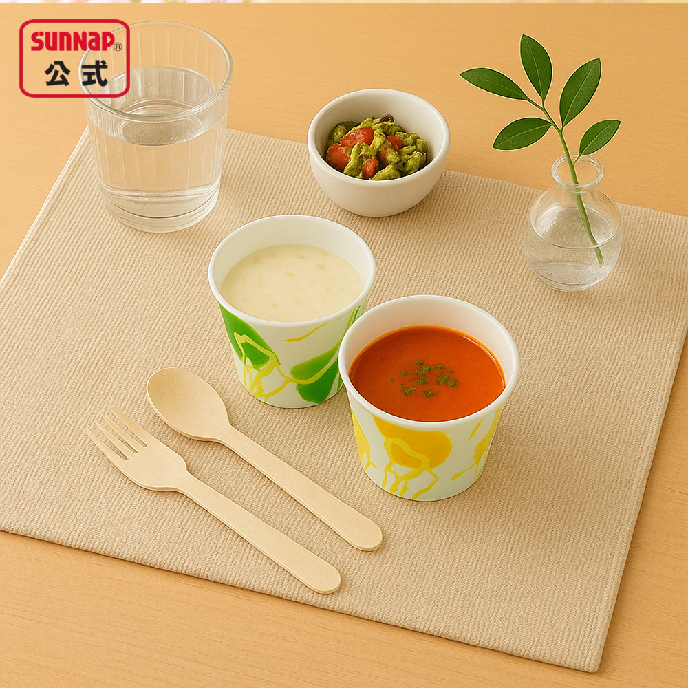 食事を選ばず便利に使える木目柄両面ラミネートカップ