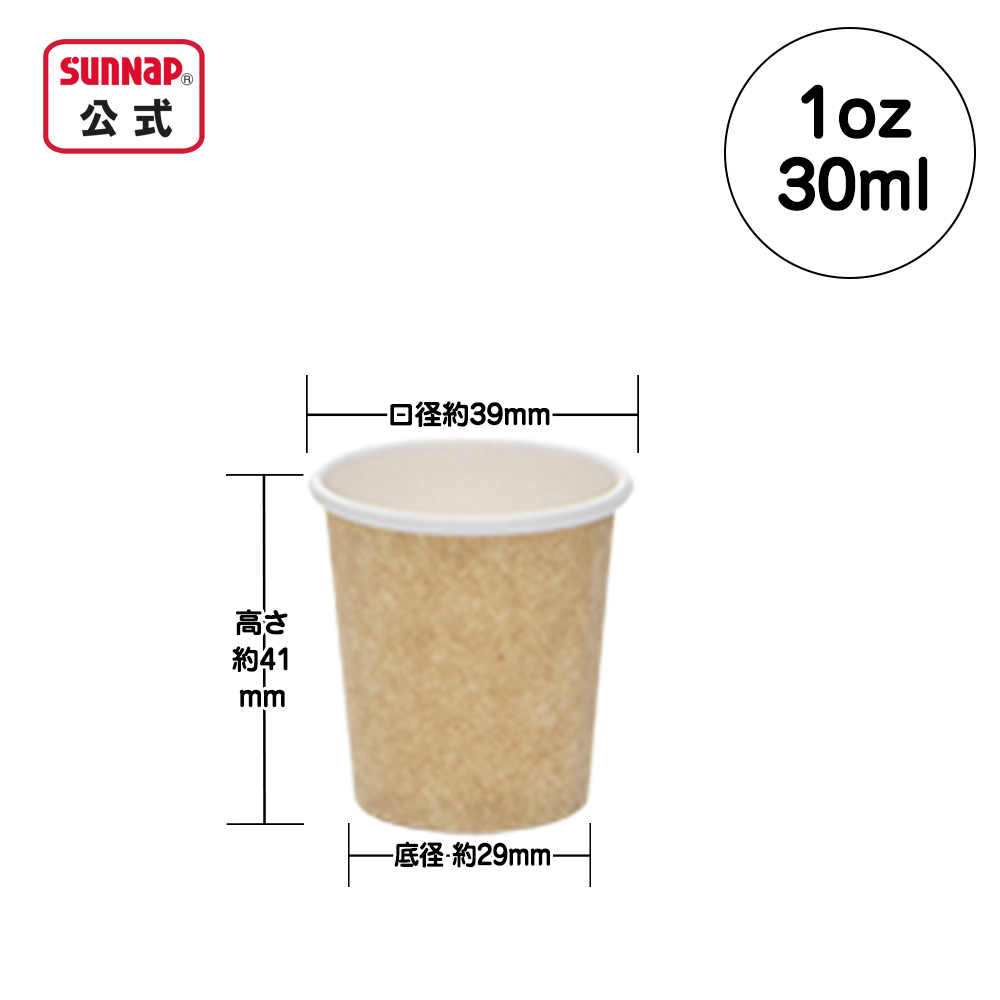 | サイズ | 品 番:C30100MW 容 量:30ml 1oz サイズ:口径39mm×高さ41mm×底径29mm 入 数:3,000個入(100個×30パック) 生産国:中国 材 質:バージンパルプ 内面ポリエチレンラミネート加工 |