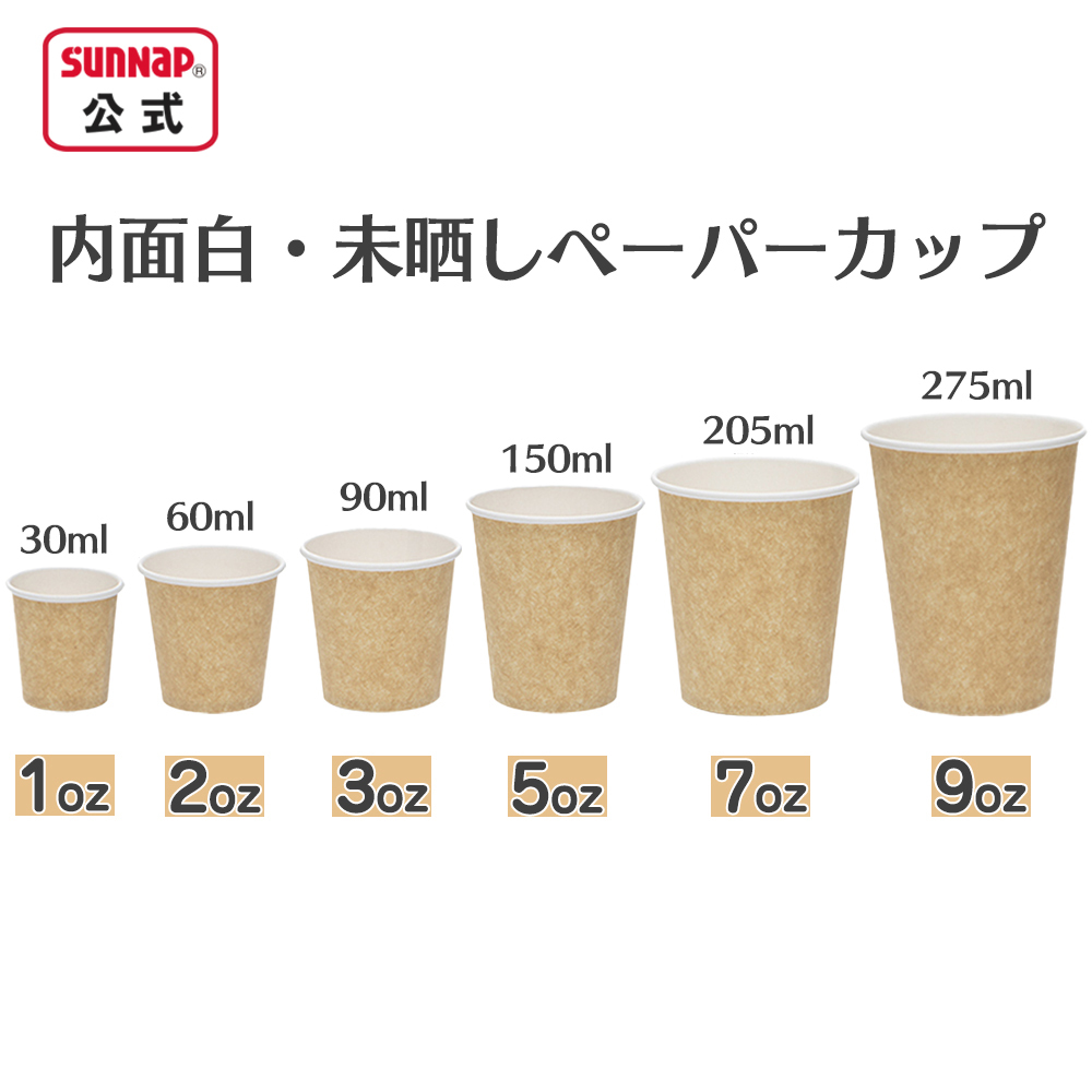 外面は未晒し、内面は白の清潔感のある紙コップ