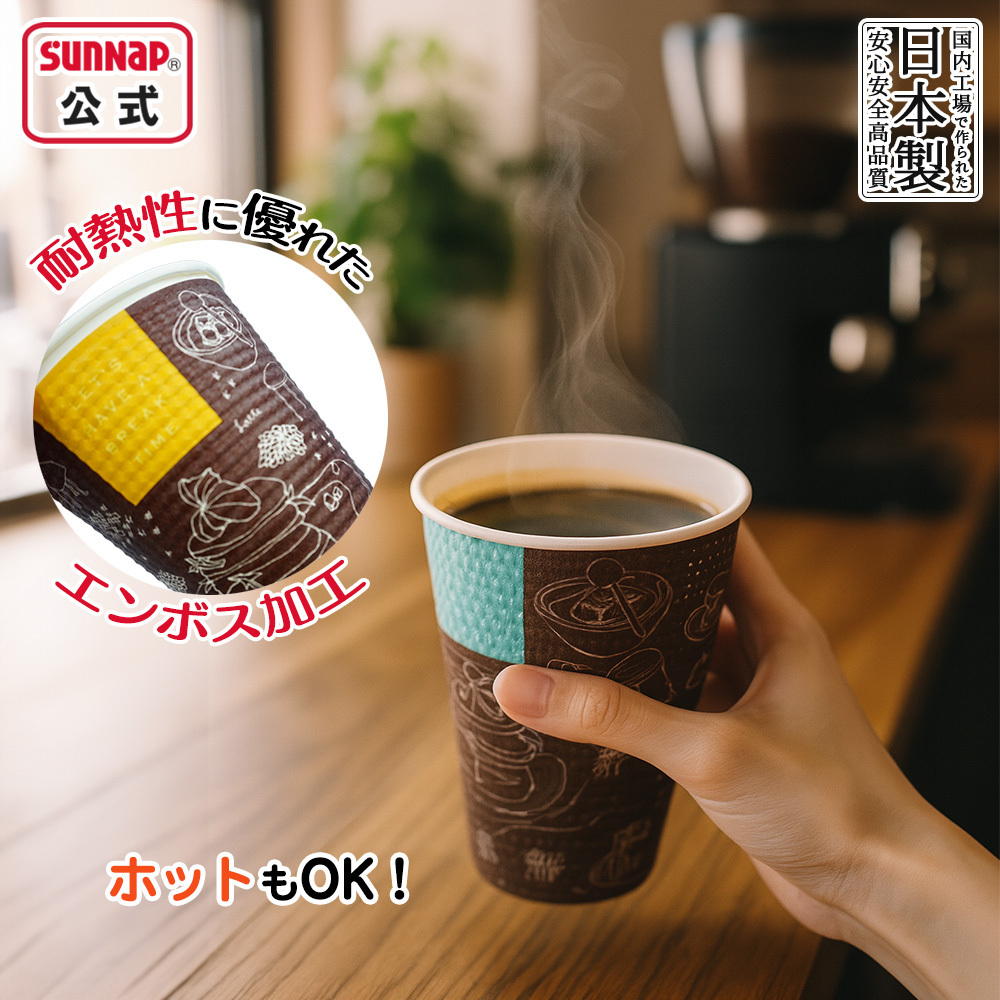 | ここがポイント | 【二重構造の断熱性】 内カップに凹凸紙を巻き付けて空気層をつくり、外面に熱を伝えにくく手に持って熱さを感じにくい紙コップです。 【容量260ml・口径約79mm】 コンビニカフェサイズ容量。たっぷり入った量をお飲みいただけます。 【テイクアウトOK】 お持ち帰り用カップにもぴったり。 【安全品質・衛生素材】 バージンパルプ100%(外面エンボス断熱加工、内面ポリエチレンラミネート加工) 【MADE IN JAPAN】 衛生管理万全な日本国内工場で生産されています。1パック50個入 |
