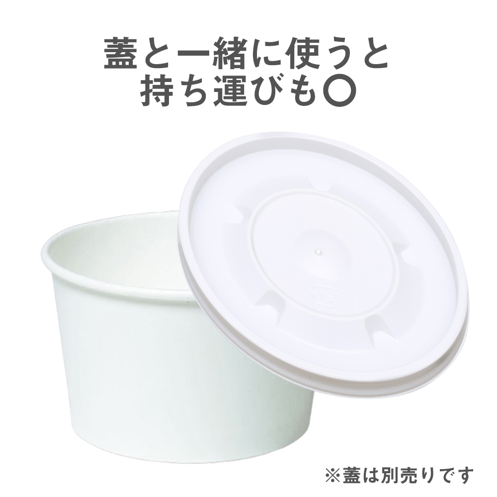 | ここがポイント | 両面ラミネート加工により、高い強度と高級感を実現しました。 スープやサラダ、フルーツ、ミニ丼などにも最適です。 専用フタを使えば、テイクアウトにもお使いいただけます。 |